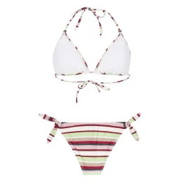 Tato sada je dodávána s krásným trojúhelníkovým topem bikin s podpůrným, přizpůsobitelným střihem díky zavazování na zádech a krku a odnímatelným rychleschnoucím košíčkům.
