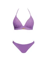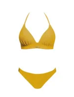 Dámské dvoudílné plavky, vrchní díl vyztužený, bez kostice, zadní část na zapínání, vrchní část na zavazování za krkem. Spodní díl klasického střihu tai.