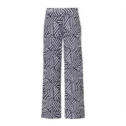 Plážové kalhoty Pastunette s kapsami – elegantní tmavě modré společenské kalhoty, noční kalhoty nebo plážové kalhoty s bílým grafickým potiskem. Možná znáte měkké vlastnosti kvality Bamboo? S viskózou získáte úplně stejné vlastnosti. Fantastický komfort a měkkost, která je příjemná na těle, s fantastickými vlastnostmi pro regulaci teploty a odvodu potu. Měkký žerzej vyrobený z rostlinných a dřevěných vláken
