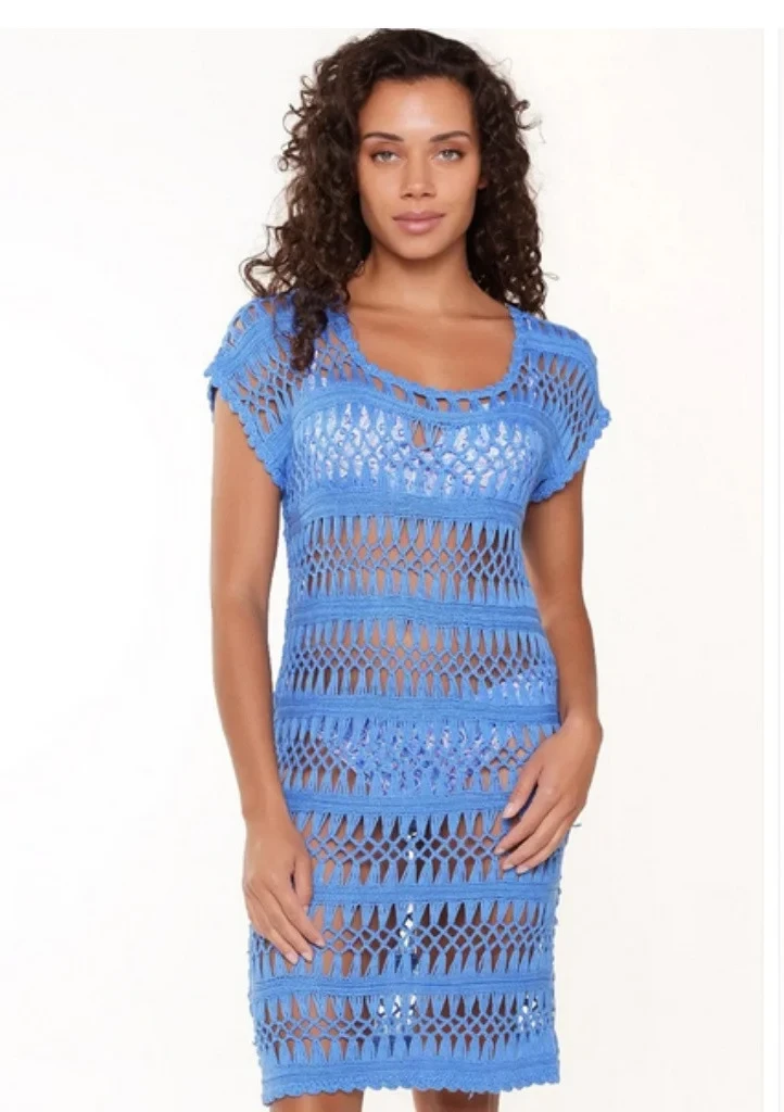 Dámské plážové šaty od značky LingaDore. Šaty jsou vyrobeny z akrylové vlny, proto jsou velmi jemné, lehké a příjemné na nošení. Jsou vhodné k bazénu i na pláž. Délka je nad kolena.