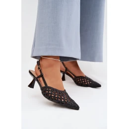 Dámské sandály vyrobené z dekorativního pletení jsou stylovým tipem na teplejší dny. Uzavřené, špičaté nosy zdůrazňují jemnou linii nohy a dodávají obuvi elegantní charakter. Model na tenkém podpatku jemně zeštíhluje siluetu, zajišťujíc ženský vzhled. Zapínání na přezku umožňuje přizpůsobení noze, zvyšuje pohodlí a stabilitu při chůzi. Tyto elegantní sandály skvěle doplní letní outfity – jak na každodenní nošení, tak na výjimečné příležitosti. Při výběru velikosti se řiďte tabulkou velikostí.