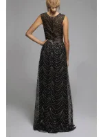 Dlouhé dámské plesové společenské šaty, top zdobený s flitry a korálky.