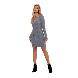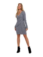 Dámské pletené šaty nad kolena, dlouhé rukávy, vepředu rafinovaně přeložené.