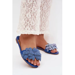 Dámské ploché modré pantofle s ozdobou Grelora