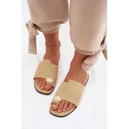 Dámské ploché pantofle z eko semiše jsou stylovým a pohodlným tipem na horké dny. Měkký materiál zajišťuje komfort nošení a ozdobný detail umístěný vpředu dodává celku jemný, ženský charakter. Jednoduchý, plochý střih činí tyto pantofle ideální jak pro každodenní outfity, tak jako elegantní doplněk letních setů. Při výběru velikosti se řiďte tabulkou velikostí.