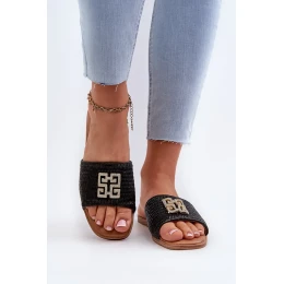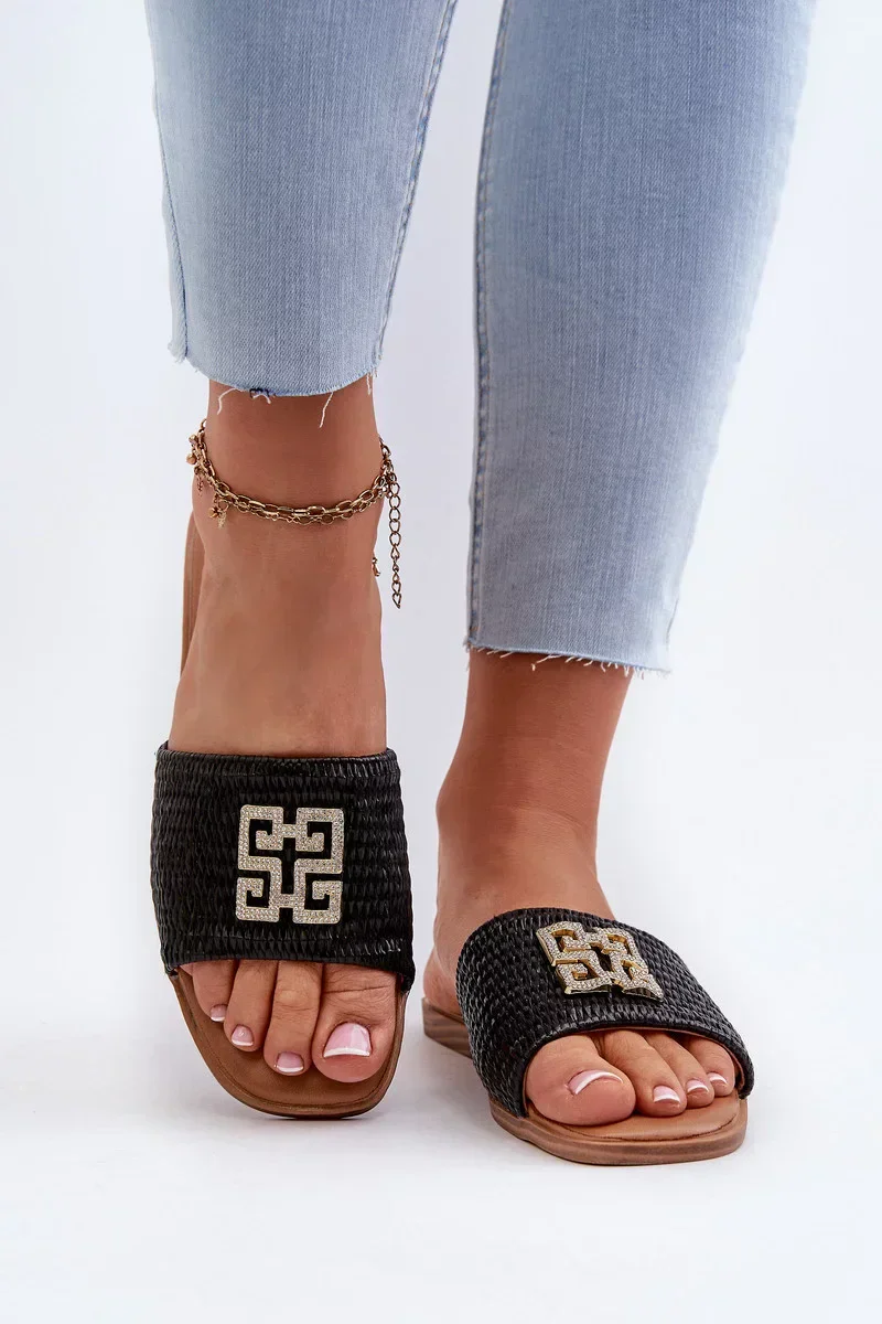 Dámské ploché pantofle s prýmkem a zdobením, Černá Omenna