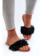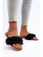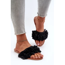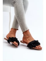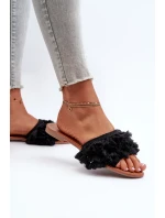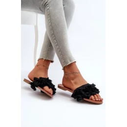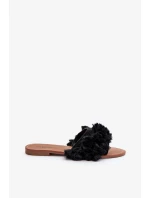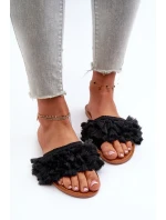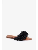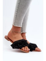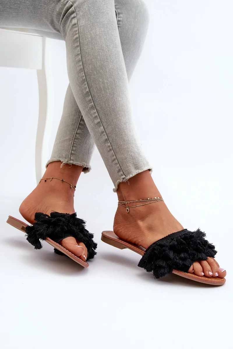 Dámské ploché pantofle s třásněmi, černá Rialle