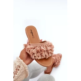 Dámské ploché pantofle s třásněmi, špinavě růžová Rialle