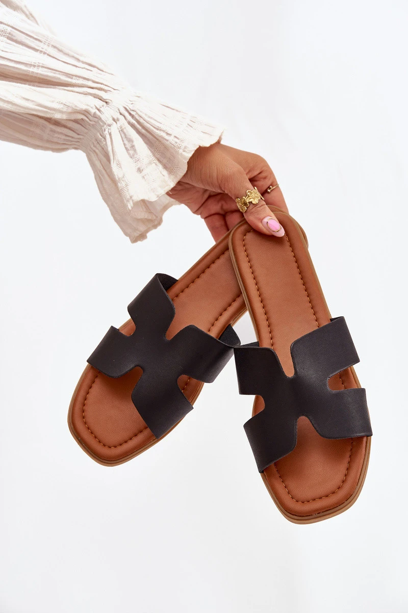 Dámské ploché pantofle s dekorativními výřezy jsou lehkou a pohodlnou obuví pro teplé dny. Otevřenější provedení zajišťuje dobrou prodyšnost, zatímco plochá podešev podporuje přirozený a stabilní došlap. Černé provedení je nadčasové a praktické, snadno kombinovatelné s různými letními outfity.