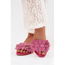 Dámské ploché pantofle s výzdobou Fuksie Grelora
