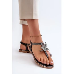 Dámské ploché sandály s ozdobnou květinou, Black Edoni