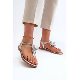Dámské Ploché Sandály S Ozdobným Kvítkem Stříbrné Edoni