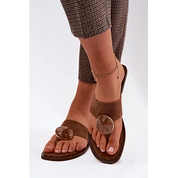 Dámské ploché žabky s ozdobou eko semiš hnědé Selvessa