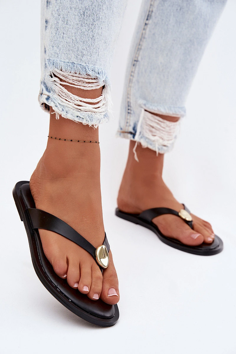 Dámské ploché žabky s zlatým detailem Černé Tella