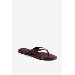 Dámské ploché žabky s zlatým detailem čokoládové Tella