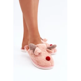 Dámské Plyšové Pantofle S Motivem Sobů Růžové Sennalith