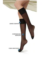 Poloprůsvitné dámské podkolenky se stupňovitým tlakem na nohy.