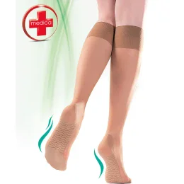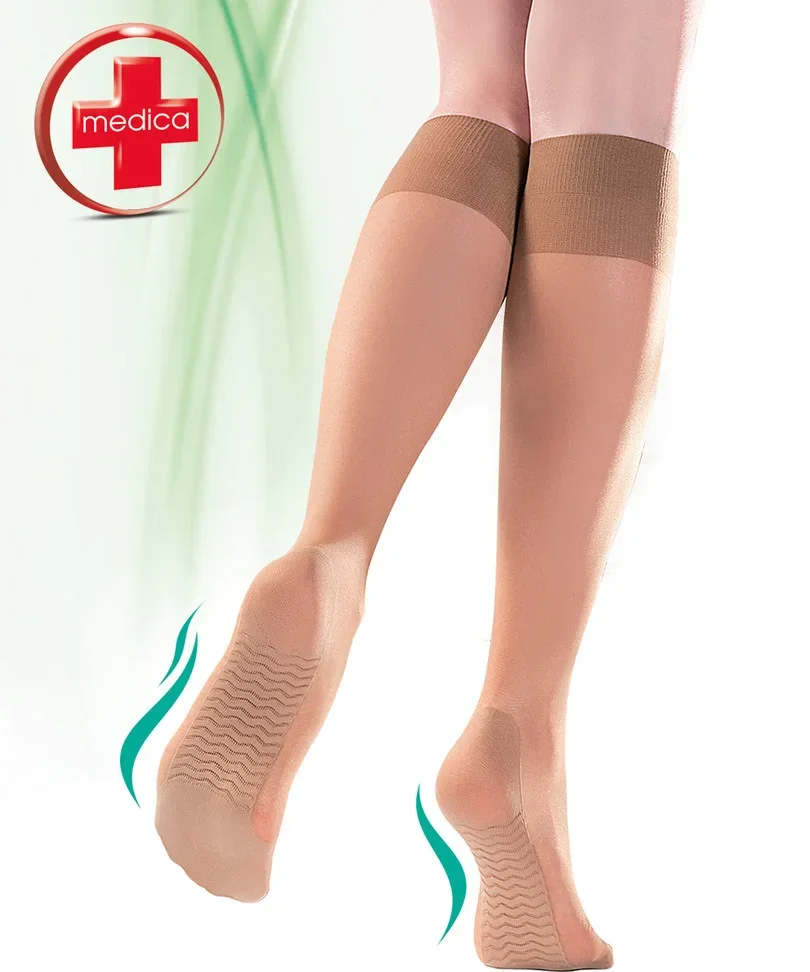 Dámské podkolenky s efektem masáže. Mají nestahující lem a jsou změkčené výtažkem s aloe vera.