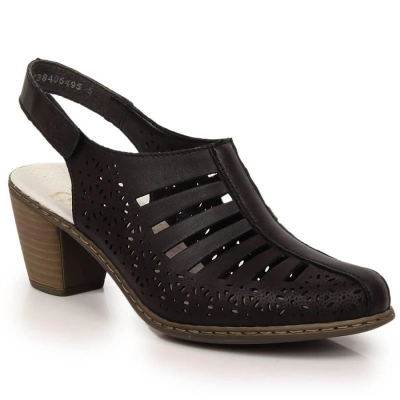 Dámské pohodlné kožené sandály na podpatku Rieker 40959-00