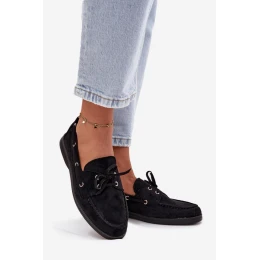 Dámské polobotky mokasíny se šněrováním Calivra – černé