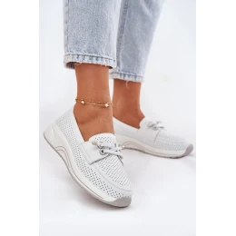 Dámské polobotky vyrobené z přírodní kůže jsou kombinací elegance a pohodlí. Usazené na platformě, zajišťují stabilitu a komfort po celý den. Model má gumičky imitující tkaničky s ozdobnými sponami, které dodávají originální charakter. Zaoblené špičky zajišťují pohodlí a měkká stélka navíc pečuje o komfort nohou. Lehké a pohodlné, tyto polobotky budou skvělou volbou pro každodenní styling, spojující funkčnost s módním vzhledem. Při výběru velikosti se řiďte tabulkou velikostí.