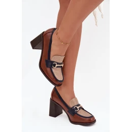 Dámské polobotky na podpatku s rytím a zlatým detailem béžovo-hnědé Novella