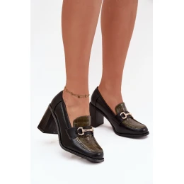 Dámské polobotky na podpatku s výstupkem a zlatým detailem Zeleno-černé Novella