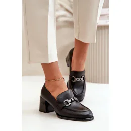 Dámské polobotky na podpatku se sponou 91116 Černá - VINCEZA