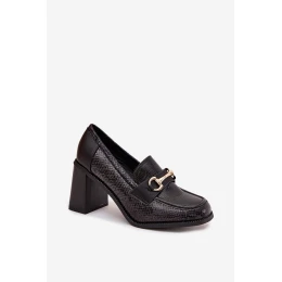 Dámské polobotky na sloupku s ražbou a zlatým detailem Novella – černé