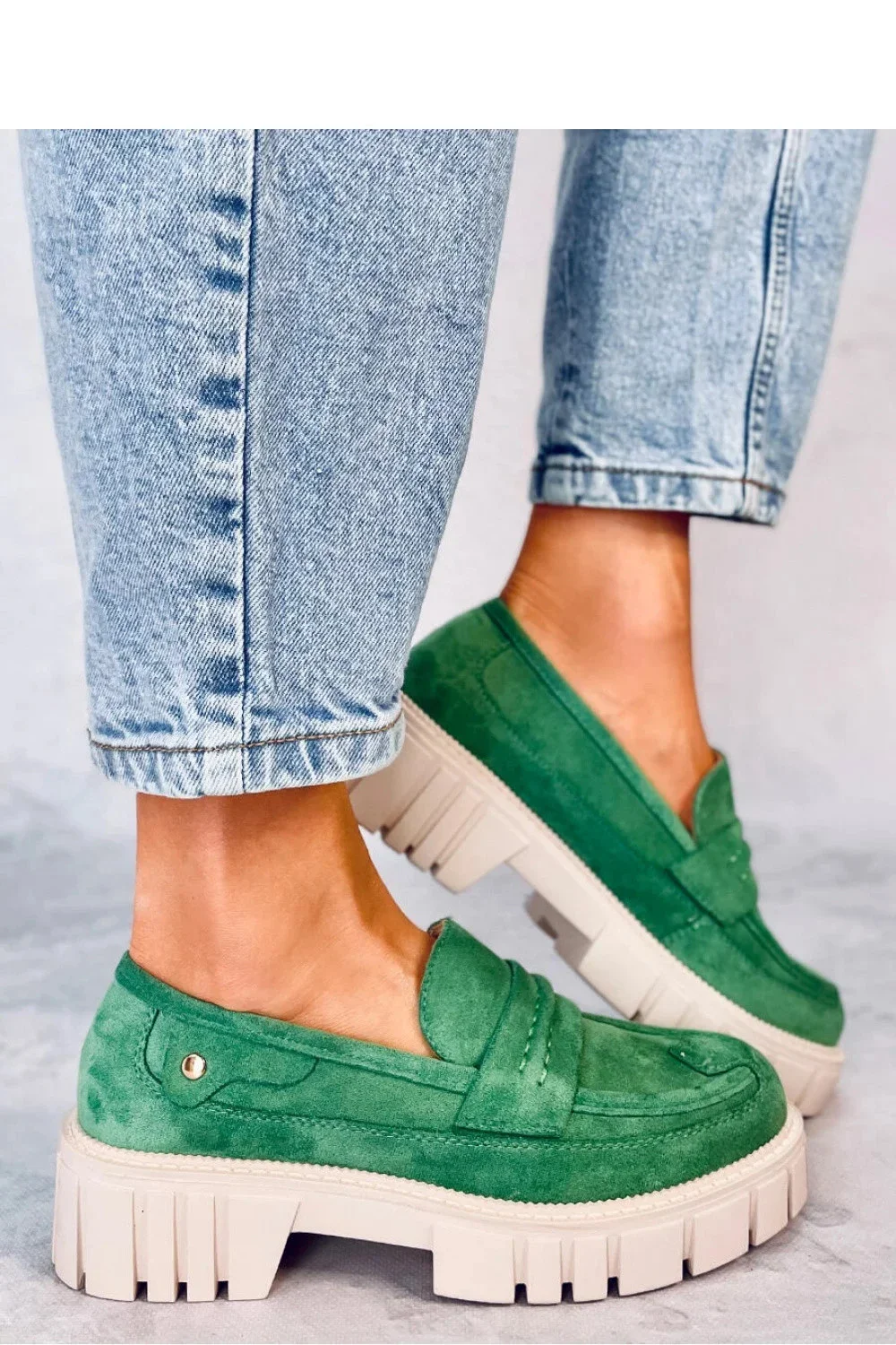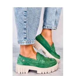 Dámské semišové mokasíny na platformě. Model se vyznačuje nejmódnějším střihem na masivní 2,5 cm vysoké podrážce. Asi víte, které boty budou kralovat vašemu šatníku? : ) Jsou vyrobeny z ekologického semiše, který podtrhuje jejich jedinečný styl.....