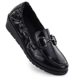 Dámské polobotky z lakované kůže na platformovém podpatku černé Rieker L5352-00