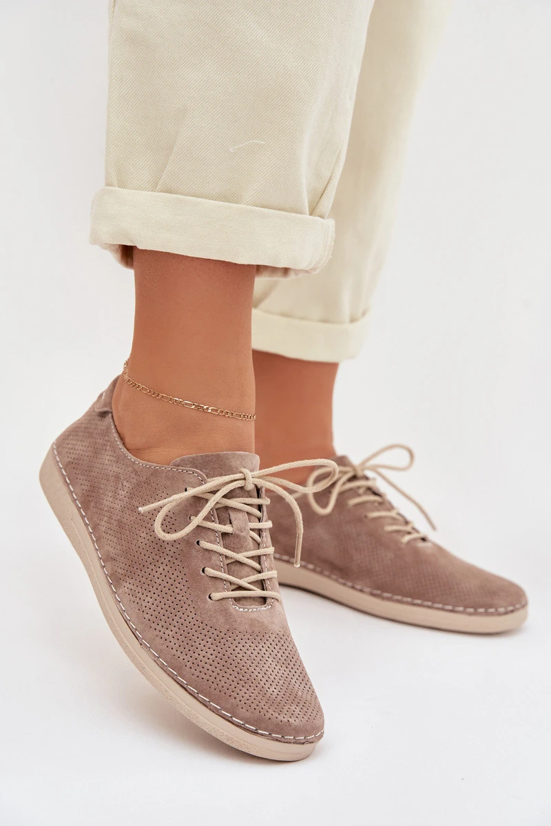 Dámské polobotky z přírodního semiše S.Barski LR61-7080 tmavě béžové