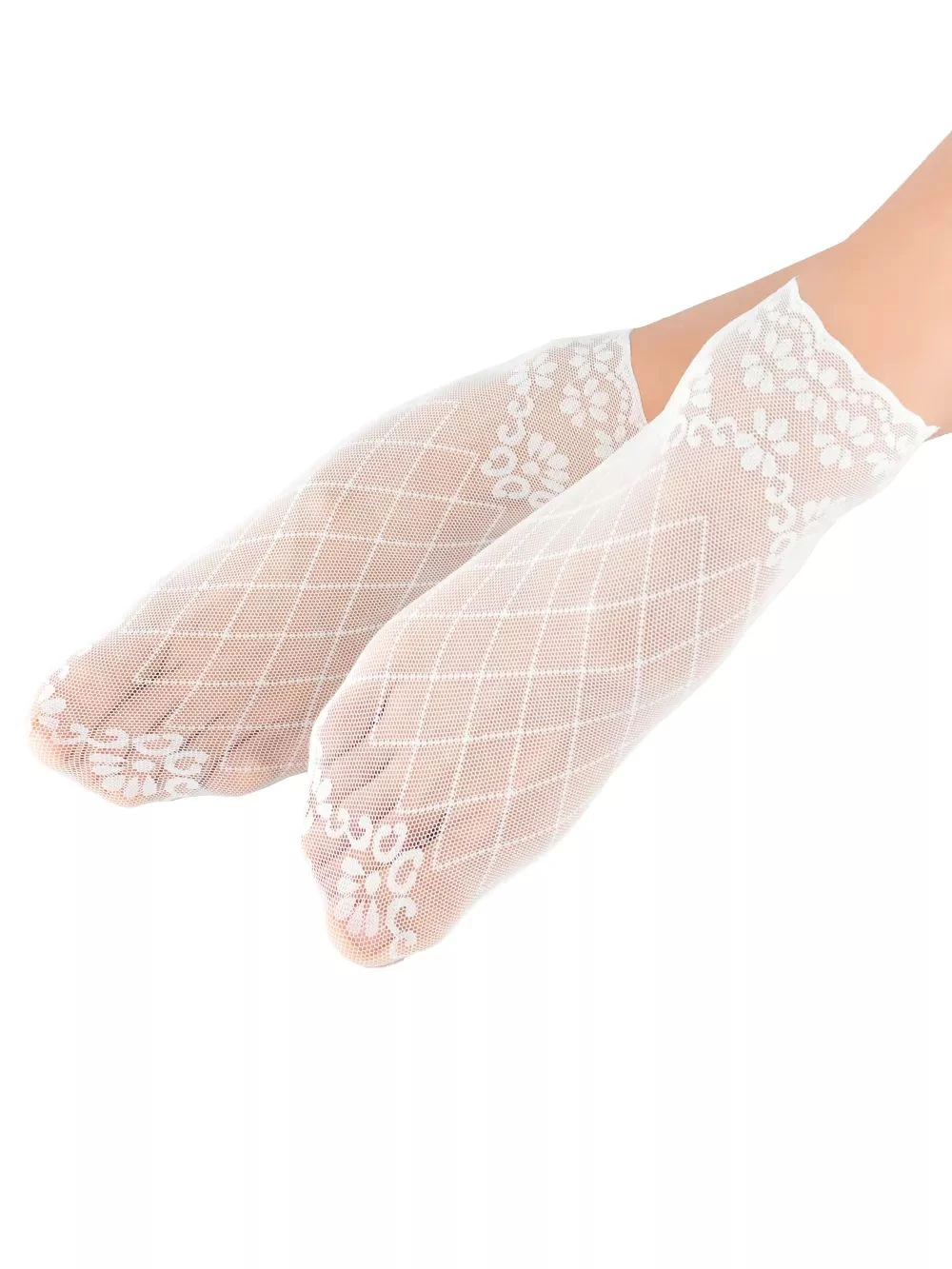 Dámské ponožky 034 W 03 NOVITI - bílá barva - z prolamované síťoviny s ozdobným vzorem - bavlněná podrážka - prodyšné a pohodlné - ozdobené na špičce a manžetě - ideální pro baleríny, mokasíny a letní boty
