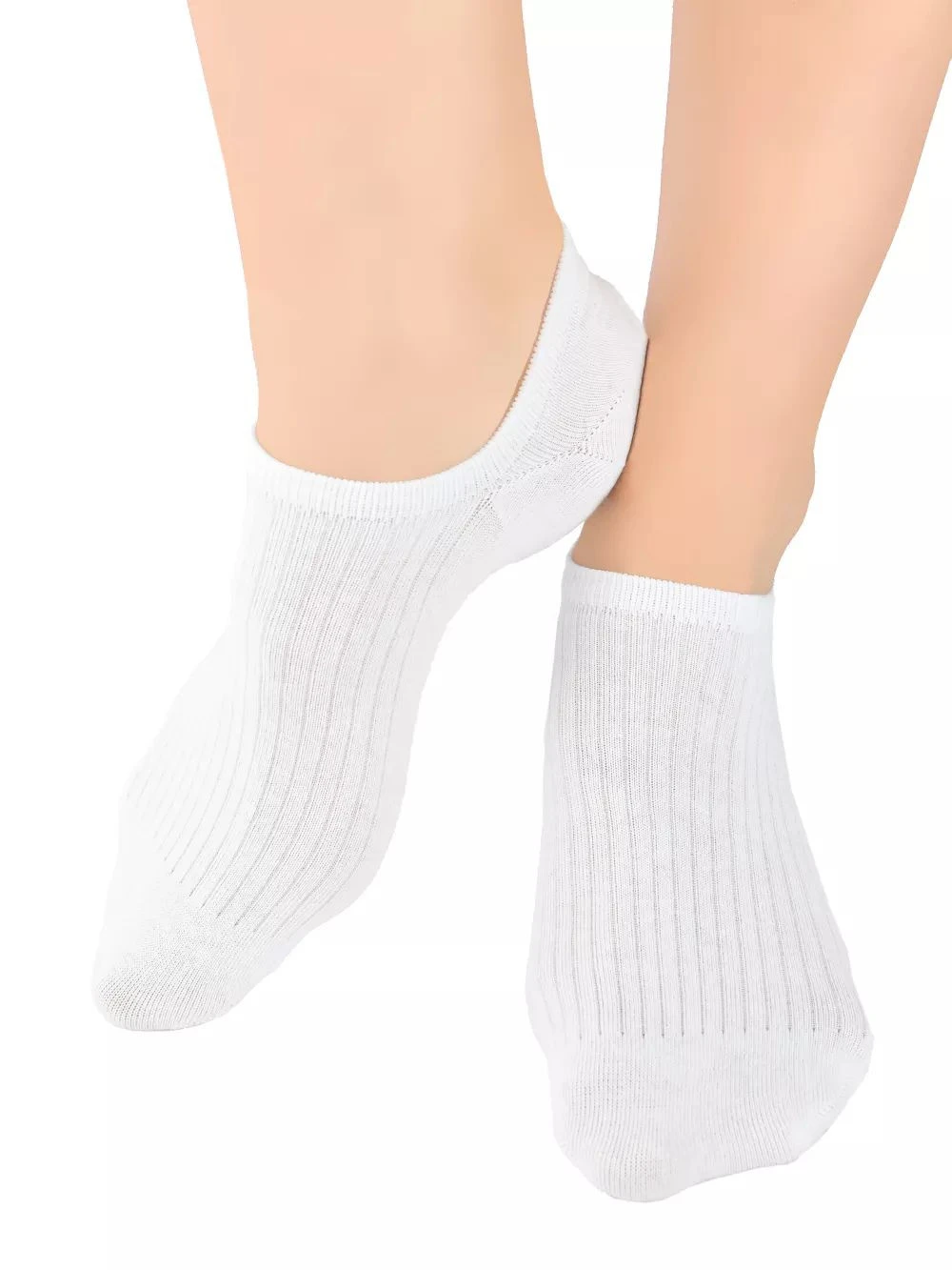 Dámské ponožky 049 M01 NOVITI - bílá barva - z vysoce jakostní bavlny - hladká podrážka - žebrovaný svršek - silikónový pásek na patě zabraňuje sklouzávání - pro každodenní nošení
