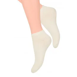 Dámské ponožky 052 white Steven - bílá barva - z vysoce jakostní bavlněné příze - kotníkové ponožky - lehké a vzdušné - plochý šev - vhodné na každodenní nošení