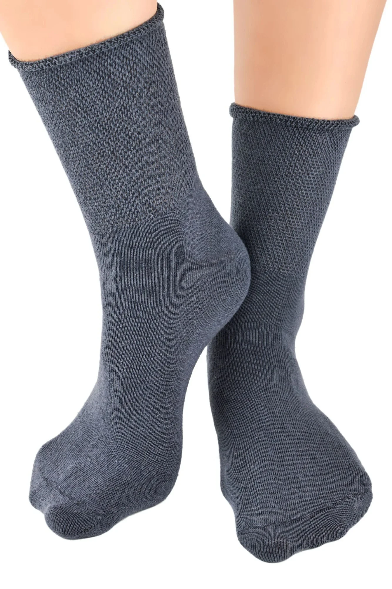 Dámské ponožky 103 U 02 NOVITI - grafitová barva - z vysoce jakostní bavlny - ploché švy - netlaková manžeta pro maximální komfort a pohodlí - speciální směs materiálů zajišťuje optimální proudění vzduchu a zajišťuje tepelný komfort - pro lidi, kteří nemají rádi pevné manžety a ponožky, které těsně přiléhají k noze a mohou narušovat krevní oběh