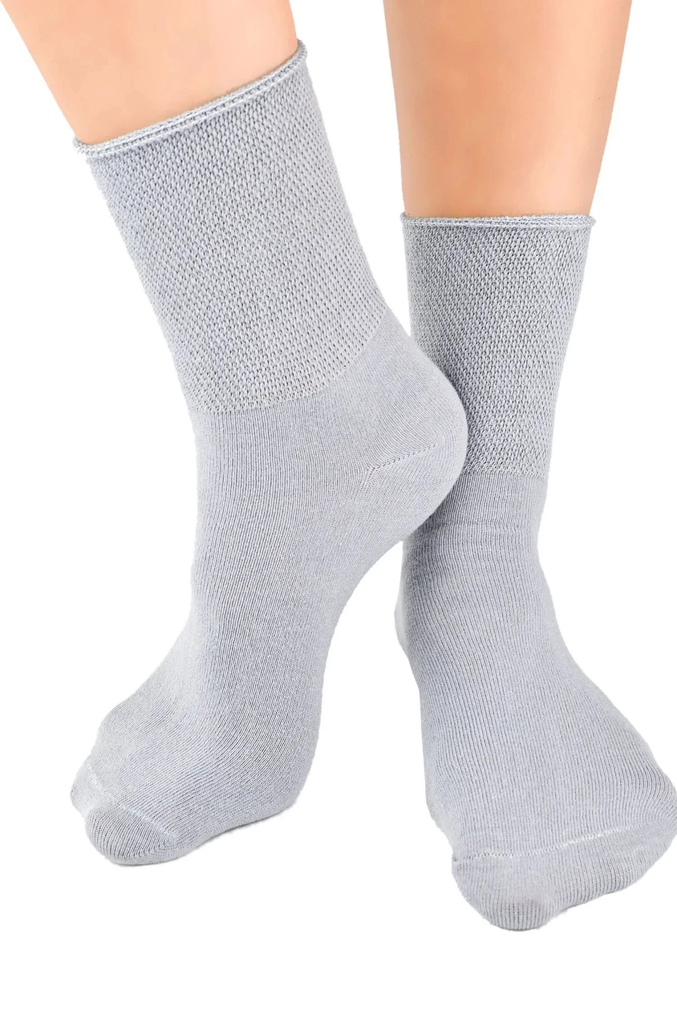 Dámské ponožky 103 U 04 NOVITI - šedá barva - z vysoce jakostní bavlny - ploché švy - netlaková manžeta pro maximální komfort a pohodlí - speciální směs materiálů zajišťuje optimální proudění vzduchu a zajišťuje tepelný komfort - pro lidi, kteří nemají rádi pevné manžety a ponožky, které těsně přiléhají k noze a mohou narušovat krevní oběh
