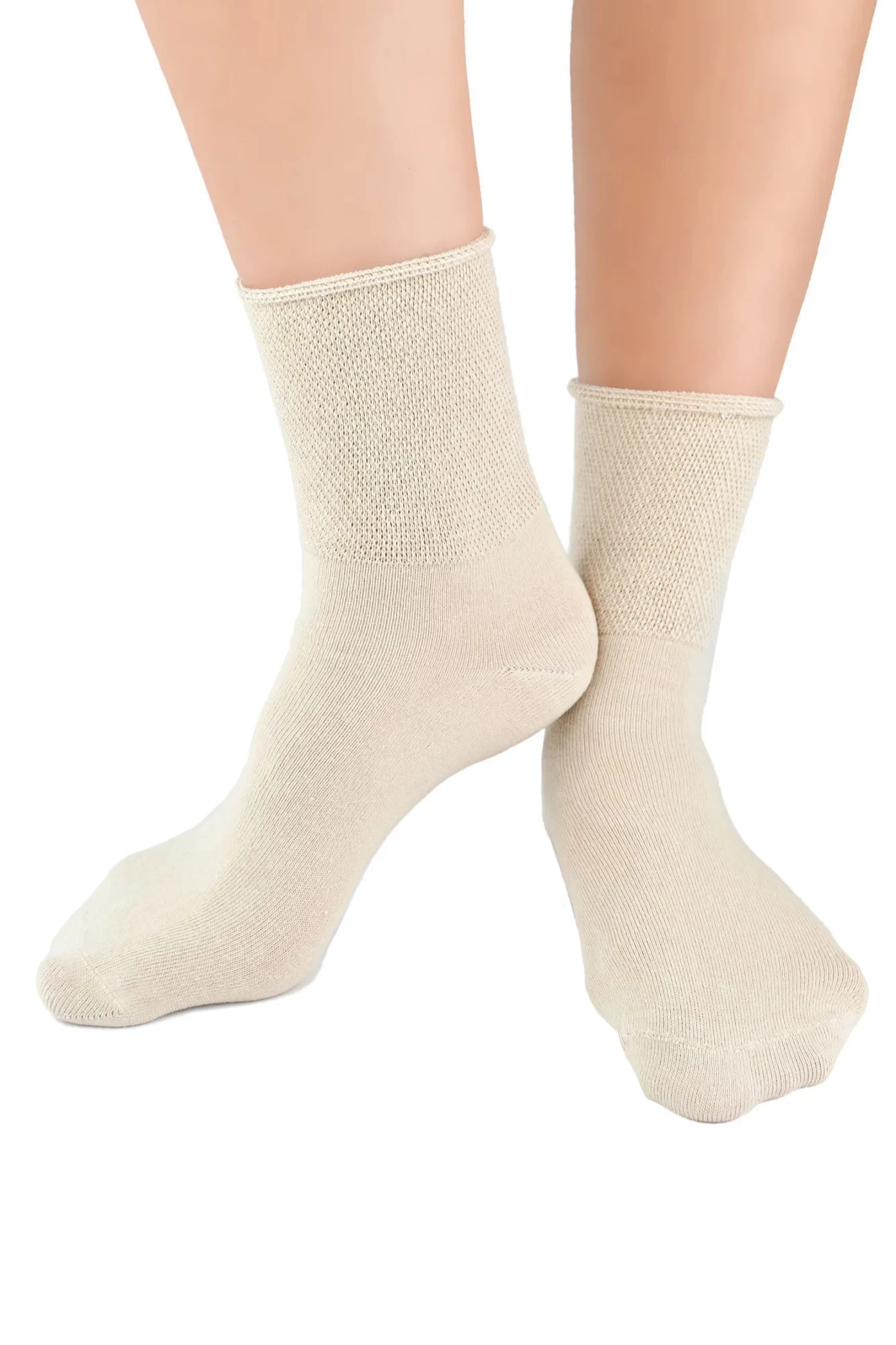 Dámské ponožky 103 U 05 NOVITI - béžová barva - z vysoce jakostní bavlny - ploché švy - netlaková manžeta pro maximální komfort a pohodlí - speciální směs materiálů zajišťuje optimální proudění vzduchu a zajišťuje tepelný komfort - pro lidi, kteří nemají rádi pevné manžety a ponožky, které těsně přiléhají k noze a mohou narušovat krevní oběh