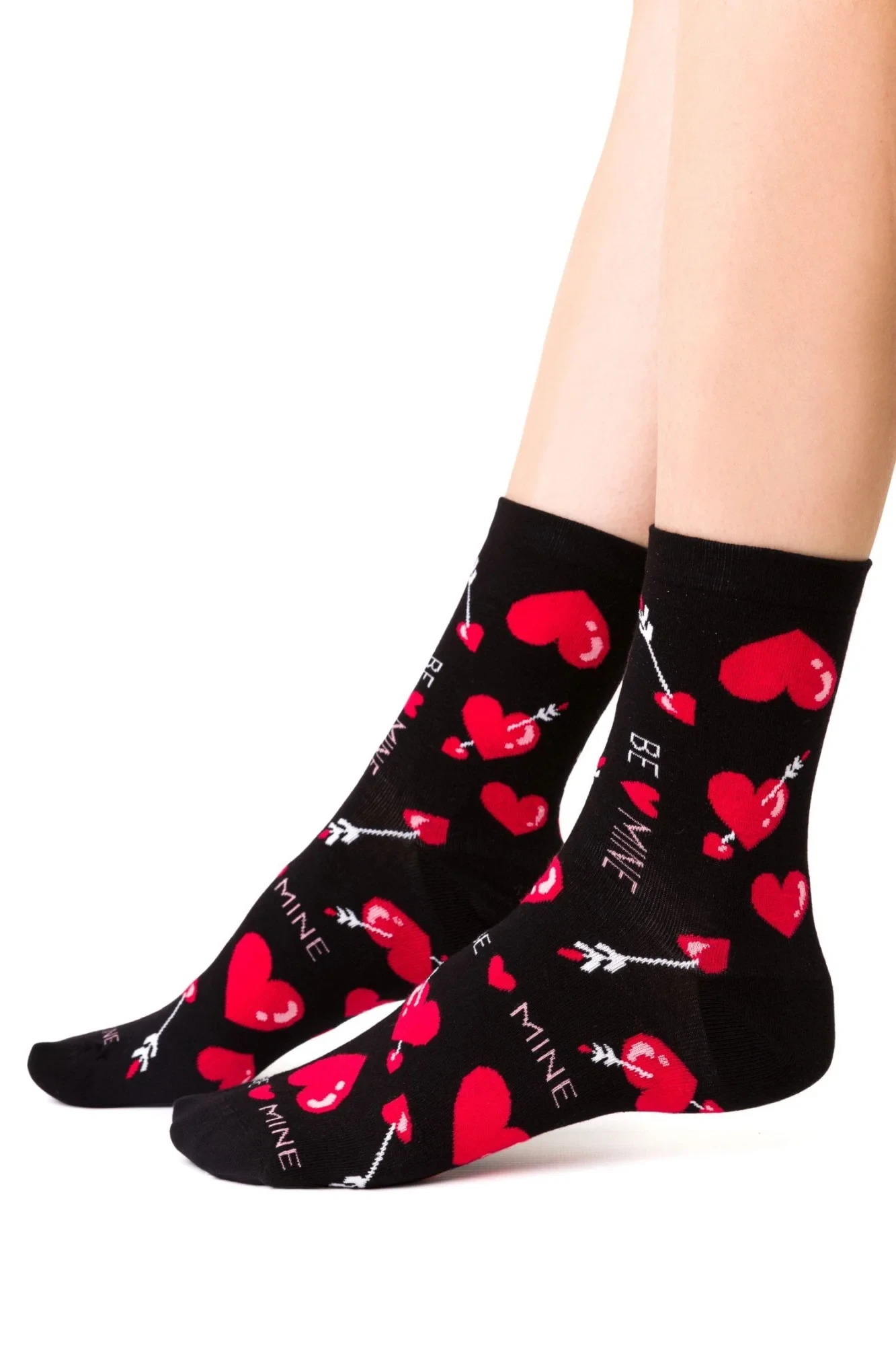 Dámské ponožky 136 071 Steven - černá barva - z vysoce jakostní bavlny - froté ponožky s protiskluzovou podešví - měkké, teplé a pohodlné - valentýnská kolekce