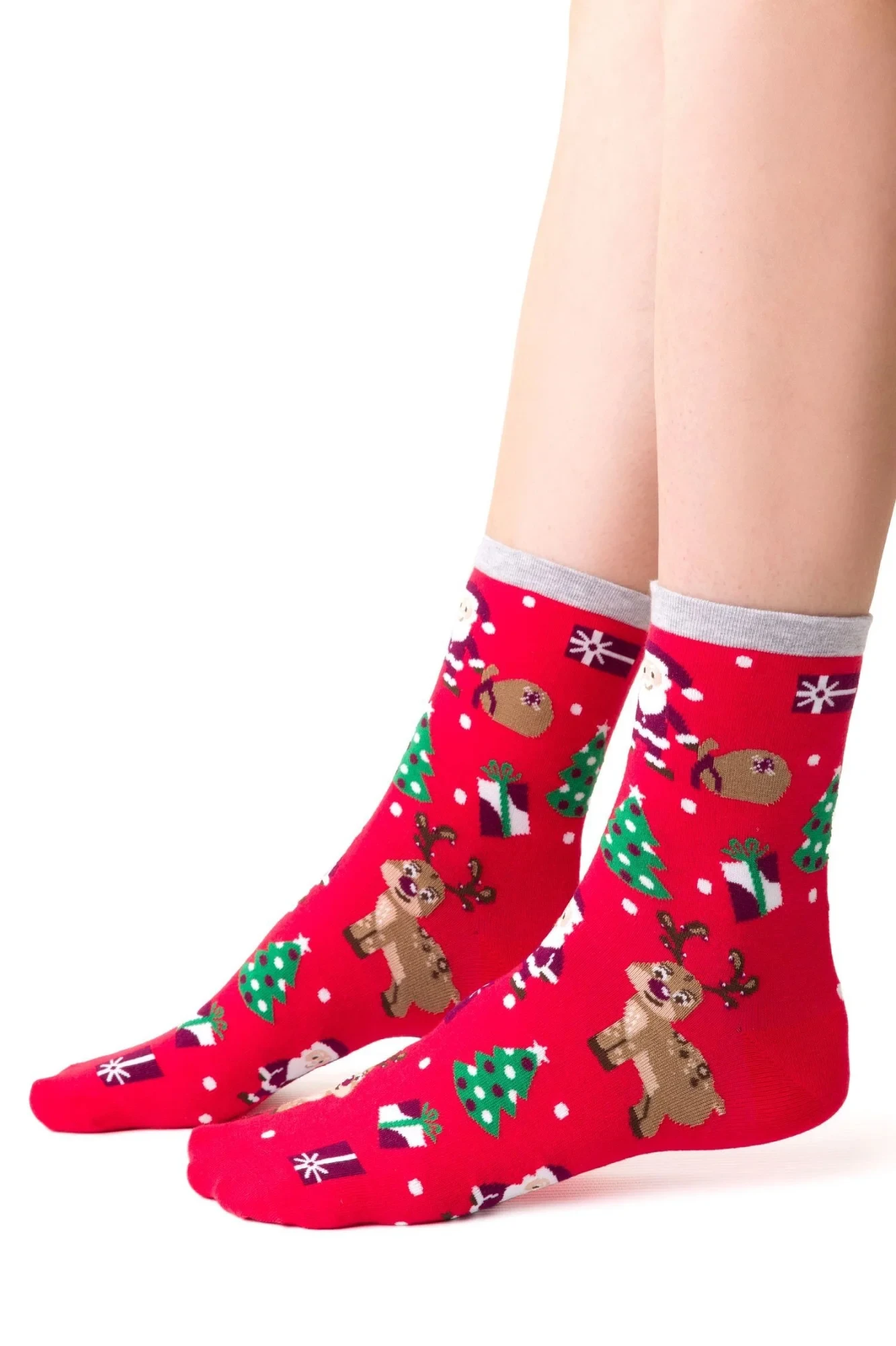 Dámské ponožky 136 090 Steven - červená barva - z vysoce jakostní bavlny - froté ponožky s protiskluzovou podešví - měkké, teplé, pohodlné a ideální pro chladné dny - vánoční kolekce