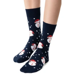 Dámské ponožky 136 139 Steven - tmavě modrá barva - z vysoce jakostní bavlny - s protiskluzovou podešví - měkké, teplé, pohodlné a ideální pro chladné dny - vánoční kolekce