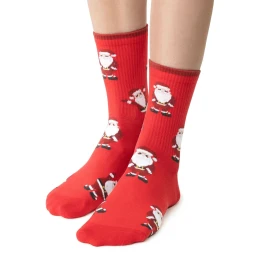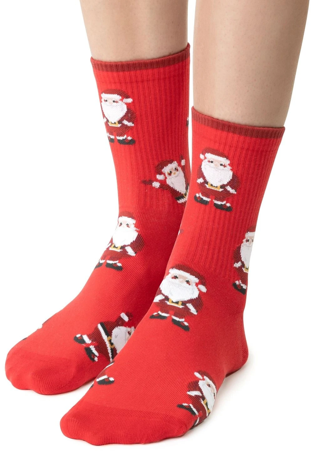 Dámské ponožky 136 140 Steven - červená barva - z vysoce jakostní bavlny - s protiskluzovou podešví - měkké, teplé, pohodlné a ideální pro chladné dny - vánoční kolekce