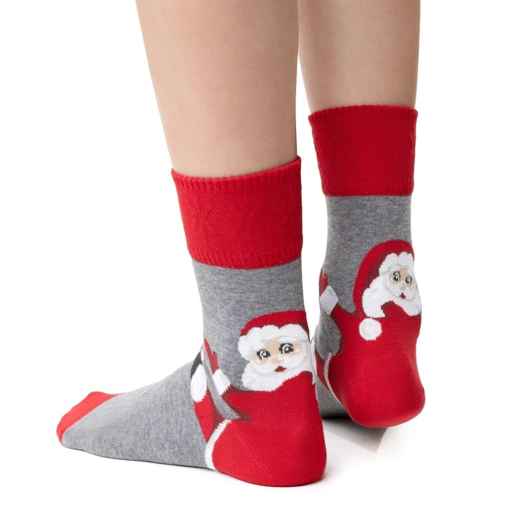 Dámské ponožky 136 146 Steven - šedá barva - z vysoce jakostní bavlny - s protiskluzovou podešví - měkké, teplé, pohodlné a ideální pro chladné dny - vánoční kolekce