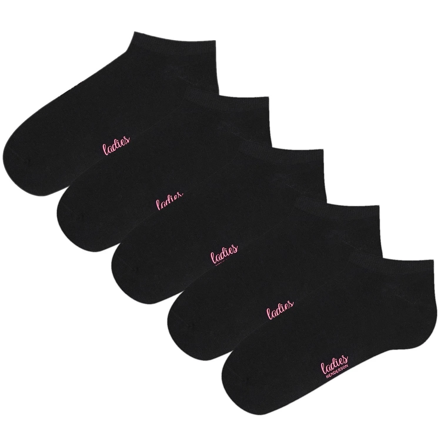 Dámské ponožky 5 pack 41607 Astria black HENDERSON - černá barva - 5ks v balení - z vysoce jakostní bavlny - kotníkové - růžový nápis na spodní straně - ideální na sport
