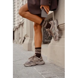 Dámské ponožky Dva puntíkované pruhy hnědé