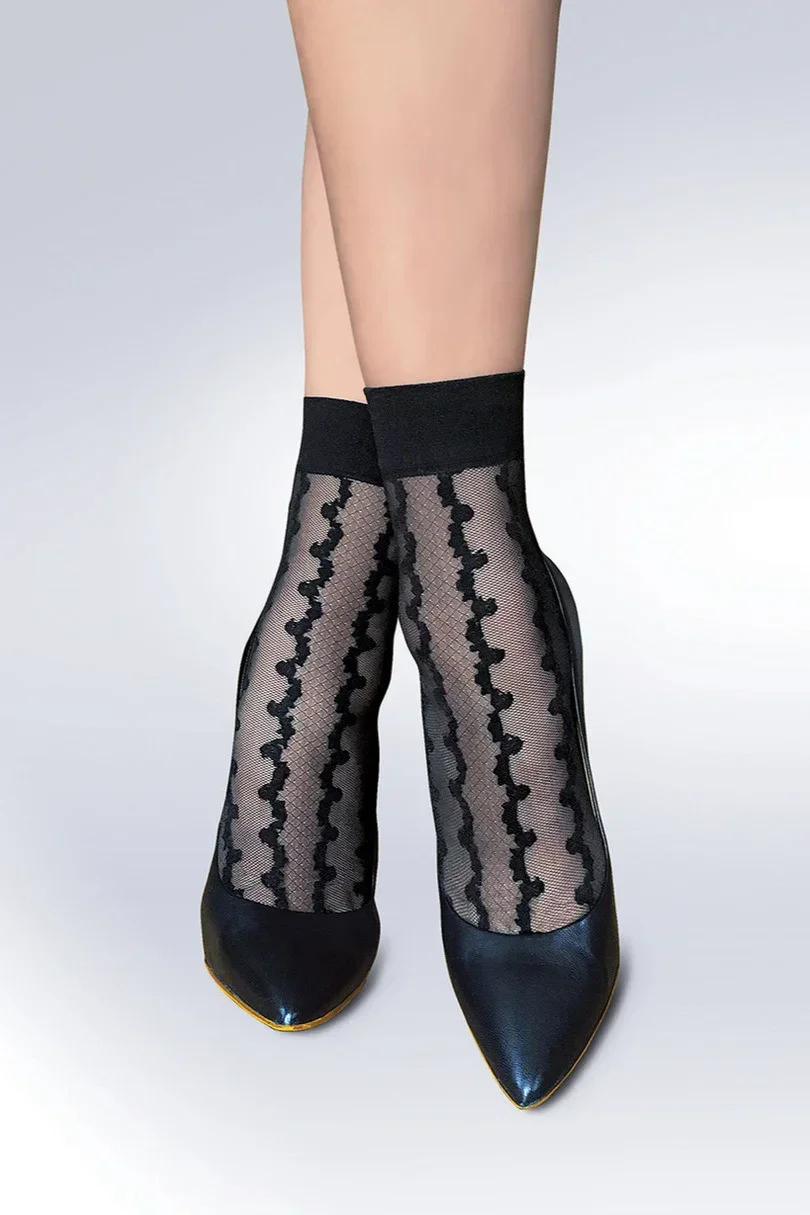 Dámské vzorované ponožky, které jsou vyrobené z opletené příze.