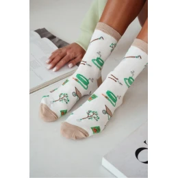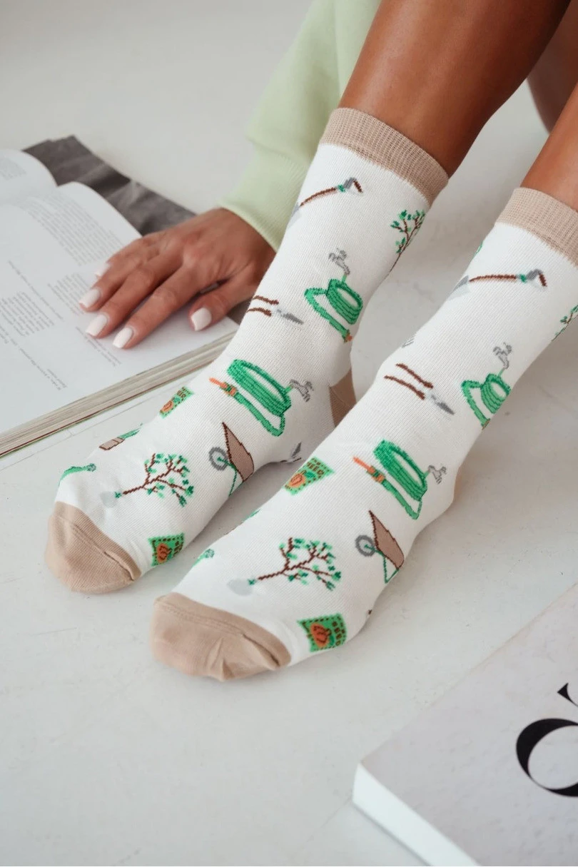 Bavlněné dámské ponožky s vtipným vzorem inspirovaným zahradnictvím jsou vynikající volbou pro ženy, které milují přírodu a oceňují pohodlí při každodenním nošení. Jsou vyrobeny z vysoce kvalitní prodyšné bavlny a zajišťují měkkost, pohodlí a správné odvětrávání nohou po celý den. Elastický materiál se dokonale přizpůsobí tvaru chodidla, čímž zaručuje volnost pohybu a pohodlí při každodenních aktivitách. Originální vtipný vzor související se zahradnictvím dodává ponožkám jedinečný charakter a činí z nich zajímavý doplněk každodenního oblečení. Jsou ideální volbou pro milovnice rostlin, zahrad a originálních akcentů v šatníku.