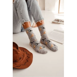Skarpetki damskie Kotki i kropki 0200.171 marki MILENA to urocze połączenie wygody, jakości i modnego designu. Wykonane z miękkiej, oddychającej bawełny z domieszką poliamidu i elastanu, idealnie dopasowują się do stopy, zapewniając komfort przez cały dzień. Wzór z motywem kotków i kropek nadaje im wyjątkowego, dziewczęcego charakteru, który świetnie komponuje się zarówno z codziennymi, jak i luźniejszymi stylizacjami. Dzięki trwałemu materiałowi skarpetki są odporne na mechacenie i utratę kształtu nawet po wielu praniach.