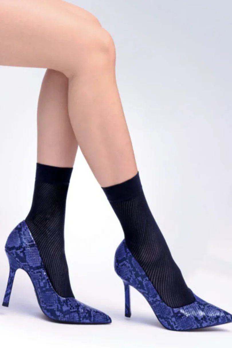 Dámské vzorované ponožky, které jsou vyrobené z opletené příze.