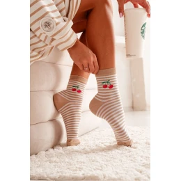 Dámské Ponožky Pruhy s Třešněmi Bavlněné Béžové